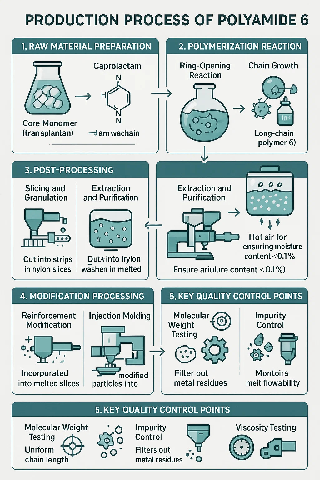 Extrakce a čištění: Nezreagovaný kaprolaktam v plátcích se smyje horkou vodou (pro recyklaci).