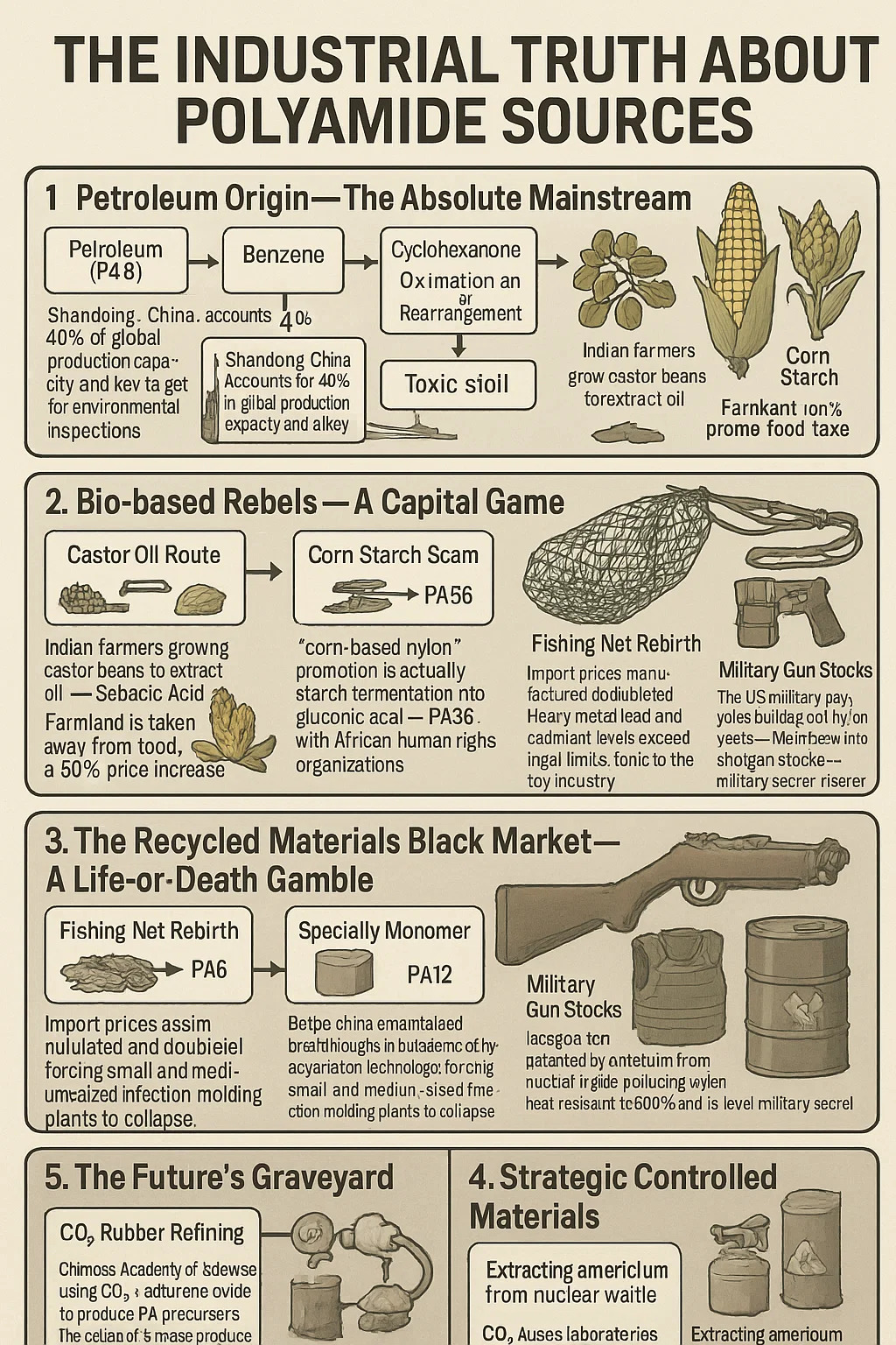 Rafinace CO2 Rubber: Čínská akademie věd používá k produkci prekurzorů PA CO₂ ethylenoxid. Hmotnostní náklady na výrobu katalyzátoru jsou nízké a potenciálně podvracejí rané fáze ropné hegemonie. Extrahování Americia z jaderného odpadu: Americké laboratoře extrahují aktinidy z jaderného odpadu prostřednictvím katalytické polymerace, produkující nylon, který je odolný proti 800 ° C a je klasifikován jako vojenské tajemství na úrovni SSS.