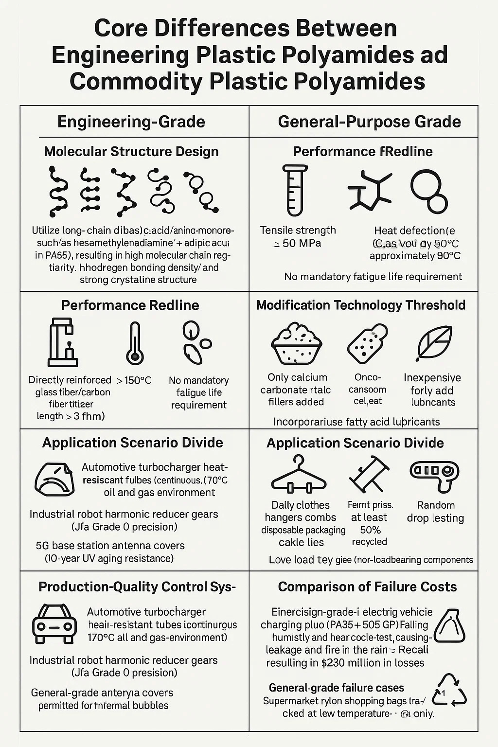 Základní rozdíly mezi Inženýrské plastové polyamidy a komoditní plastové polyamidy